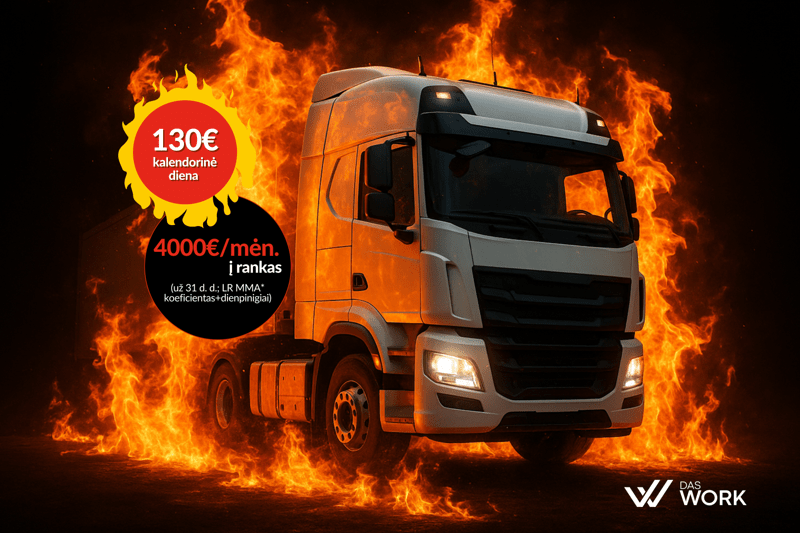 Atlyginimas 4000€/mėn. | 130€ k.d. | Iki 300€ kuro kompensacija